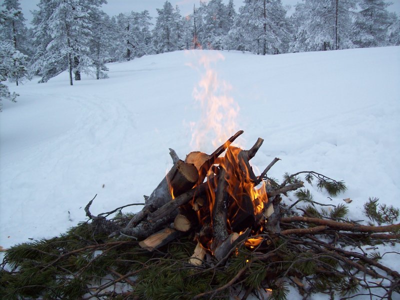 tjärved, fenomenal värme, 1 tändsticka |