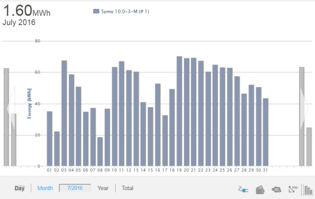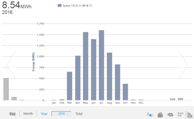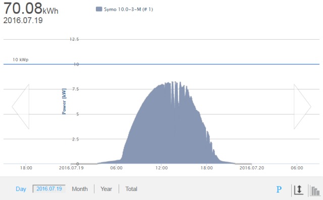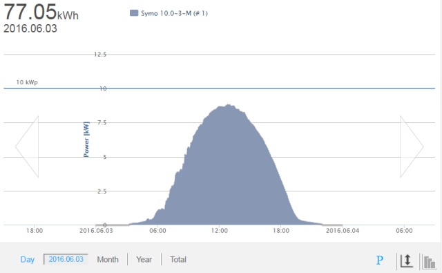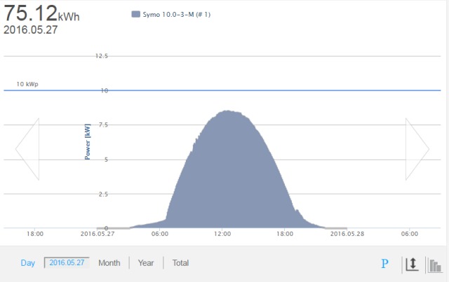 Solpaneler och växelriktareTaklutning 27 grader, riktning nästan rakt mot syd, kanske 5-10 grader mer mot väst.Nordlig breddgrad: 63,9 39 paneler á 1,63 m2 = 63,45 m2, Typ: Ecsolar ECS-250M60 (250W) Data 1 st Växelriktare Fronius Symo 10-3-M (trefas, wi-fi) Data, pdf ![]()